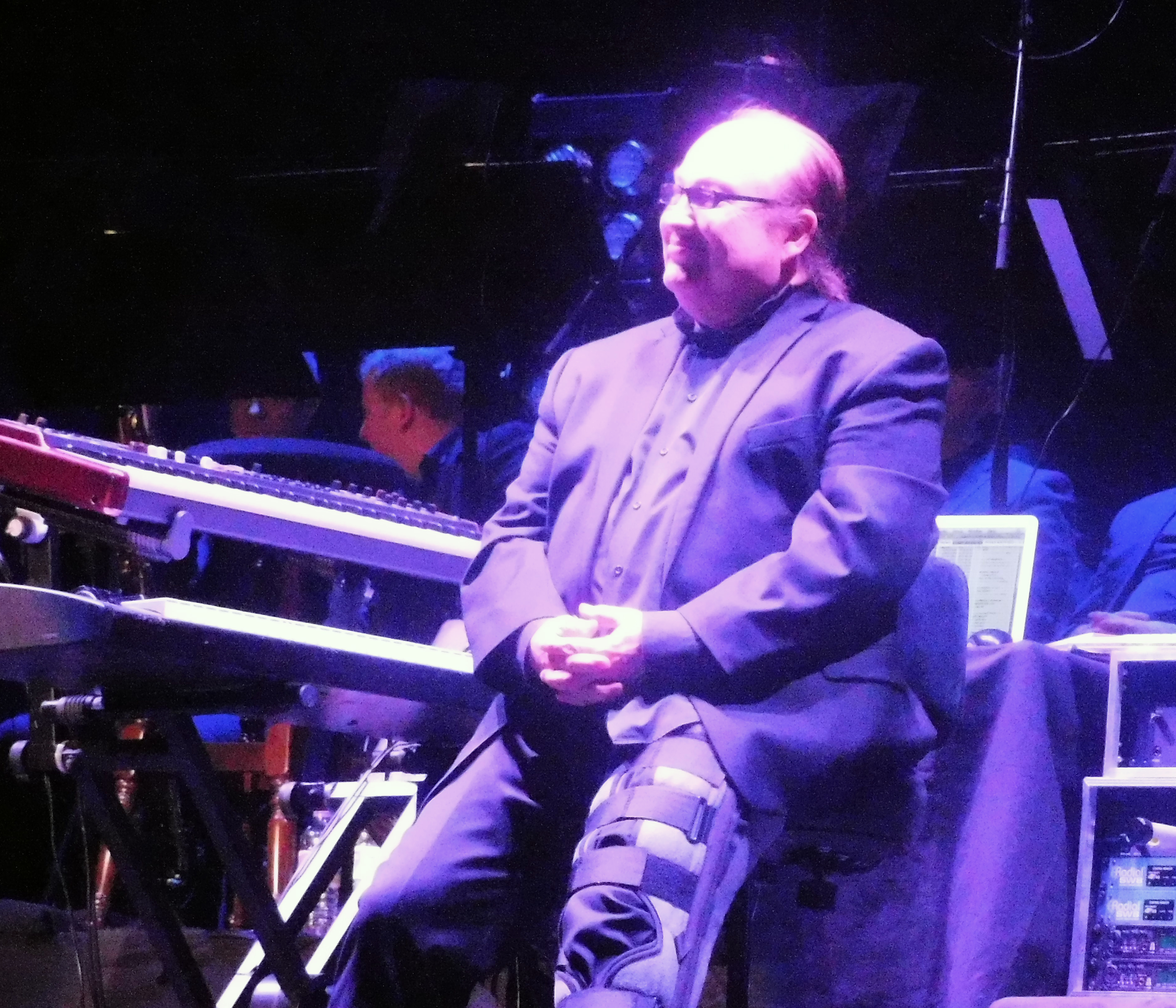 The evening didn’t begin very auspiciously. Mr Robinson limped into place at his keyboard with seemingly a full cast on his leg. He pressed a button on a hard disk unit at the side of his keyboard and the packed hall was filled with a selection of gentle orchestral renditions of timeless classics culminating in “Candy Girl” before the rest of the band began to take the stage. Frankie would later tell us that Robby’s injury nearly led to the cancellation of the tour but Robby had insisted in delaying surgery until after this run of shows in order to come and see their UK audiences.