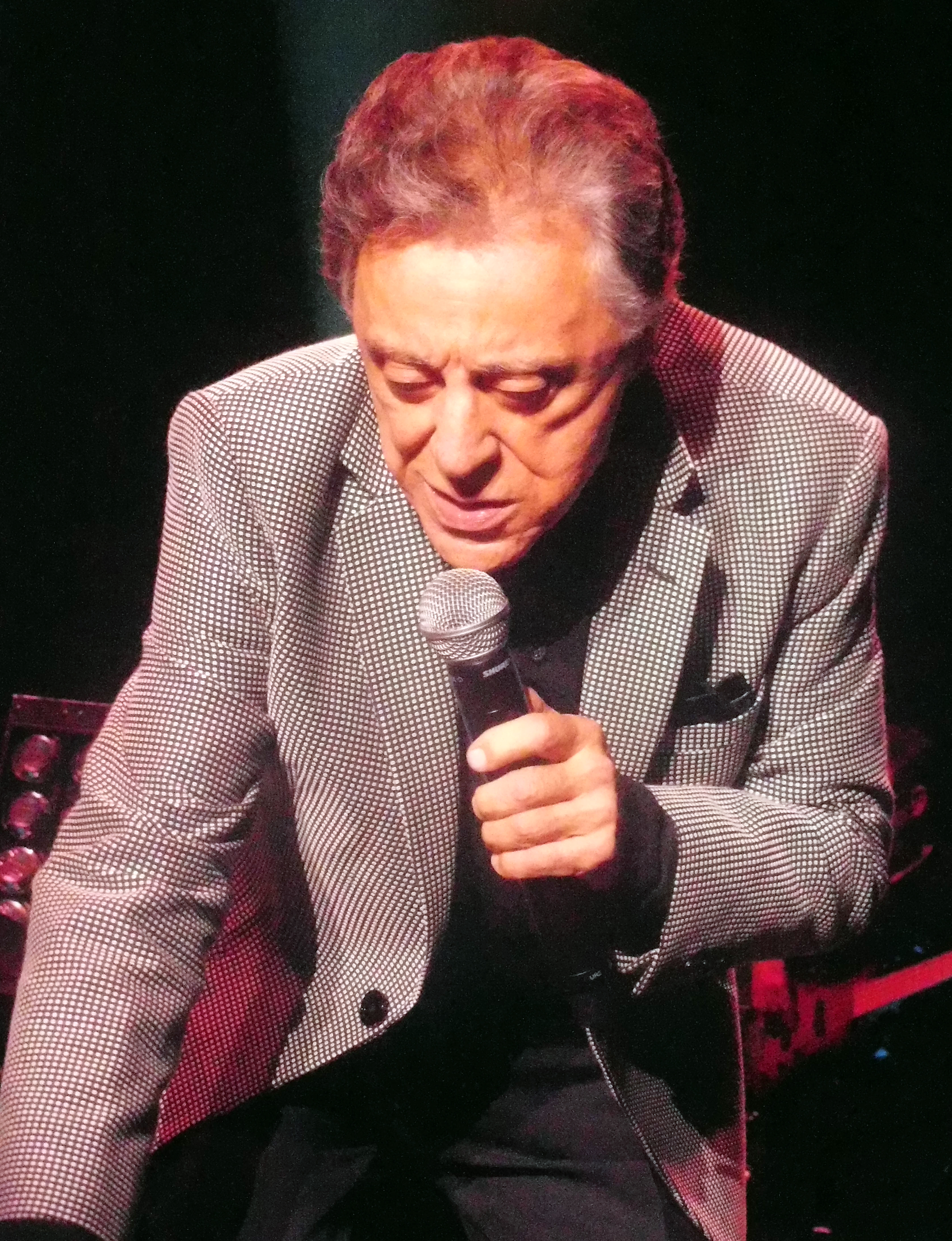 After a quick joke about slowing things down “because I need to” Frankie performed the aforementioned big solo hit “My Eyes Adored You” and then a contemporary jazz flavoured “Swearin’ to God” and then the UK hit “Fallen Angel” (featuring a great solo from Mr Lingle) which led then into a selection from Valli’s 2007 solo album “Romancing the 60s”. The big introduction to the songs from this album that Frankie gave made sense when the album was new or when it was on sale in the foyer of the auditorium but less so now. However, preambles aside, there is no question that Frankie’s live voice has warmed to these songs over recent years and the audience too have gained an enthusiasm for them. “Spanish Harlem” which was originally a hit for ex-Drifters man, Ben E. King was warmly received. That was followed by a song which originated in the French language when it was recorded by co-composer Gilbert Becaud before becoming a big English language hit for the Everly Brothers and then being covered by it seems the whole world including Bob Dylan in the early 80s and even Bruce Springsteen on one of his live tours. On this Valli’s version is achingly beautiful and fragile and “Let it be Me” is a perfect ballad for him. Next he blends the Temptations’ hit “My Girl” with a big hit from another New Jersey band, the (Young) Rascals’ “Groovin'”. This really drew in the audience with sing-along and clapping. “Spanish Harlem” had a great sax solo, “Let it be Me” was introduced by some beautiful flute work. Both sax and flute were provided by Seasons member Rick Keller. “Groovin'” featured tremendous keyboard work and a great solo by Robby Robinson who could obviously be a capable contemporary jazz pianist in his own right if this wasn’t his chosen gig.